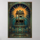 Art Deco Cinema Popcorn Machine Gold & Teal Poster