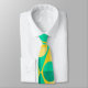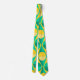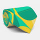 This tie has an art deco design of two-toned yellow and green circles inside two-toned yellow and green triangles.