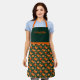 This apron features vibrant oranges and sliced citrus arranged in a refined Art Deco–inspired composition. Set against a deep emerald green background, the design blends bold geometric linework, sunburst motifs, and elegant gold accents with richly colored oranges and glossy green leaves. The result is a sophisticated yet lively aesthetic that evokes vintage glamour, classic Hollywood elegance, and timeless luxury. Name is customizable.