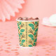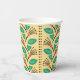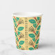 This paper cup features Leslie Sigal Javorek's contemporary adaptation of an Art Deco style Japanese wallpaper from the 1920's. Highly stylised strawberry plants w/ emerald green leaves climb a buttercup yellow wall between black polka dot trellises. See coordinating home decorating products at HoMeArts.