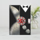 A swanky art deco couple wearing black tie apparel - she's in a shimmery silver gown and he's chic in a black tuxedo. The centerpiece is a casino chip that contains 75th birthday numbers and tumbling silver dice. This versatile, trendy invitation is perfect for any special occasion - retirement parties, milestone birthdays, cocktail & dinner parties, rehearsal dinners, wedding receptions, anniversaries, semi-formal and formal events or festive holiday soirees. Easy to personalise, use the "Customise It" button above to add your own text. Matching favour stickers also available. For questions or special requests, please contact the designer at cheryl@cheryldanielsart.com. If this invite is not exactly what you're looking for, all of my products can be custom designed to accommodate your specific needs. "Art Deco Couple Birthday Party" invitation by Cheryl Daniels © 2015.