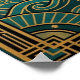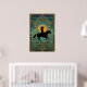 A majestic architectural tribute to the spirit of the West. This artwork features a black silhouette of a cowgirl riding a horse, presented as a monument atop an ornate Art Deco pedestal. Framed by a towering cathedral-style geometric arch and a vibrant orange sunburst, the deep teal sky is dotted with stars and stylised clouds. Perfect for a modern ranch, sophisticated study, or a unique gallery wall.