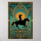 Art Deco Cowgirl Horse Monument Sunburst Poster