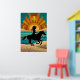 Art Deco Cowgirl Horse Sunset Teal Orange Poster