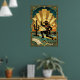 Art Deco Cowgirl Lasso Cactus Desert Sunset Poster