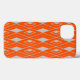 This phone case has an art deco design of diamond shapes on a field of orange.