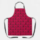 This apron has an art deco design of diamonds with vertical and diagonal lines and circles on a field of hot pink.
