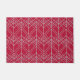 This doormat has an art deco design of overlapping diamond shapes in silver on a field of burgundy.