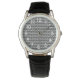This men's watch has an art deco design of overlapping diamonds in black on a field of white.