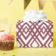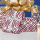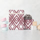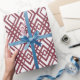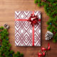 This wrapping paper has an art deco design of overlapping diamonds in sangria on a field of white.