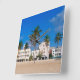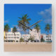 This is the art deco district of South Beach Miami. The buildings are painted in pastel colours surrounded by tropical palm trees.
