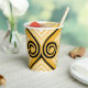 Ancient tile patterns from Persia had a big influence on western artists in the 1920's-1930's, the result was what we call today "Art Deco". This boldly coloured cushy paper cup features digital artist, Leslie Sigal Javorek's rendition of one such pattern. This one in varying shades of yellow, cream & black.