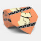 Art Deco Dog, Black+Silver Greek Key+Salmon Bg Tie