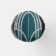 This bottle cooler has a design made of domes and vertical lines in silver on a field of blue.