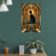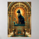 A regal black cat sits enthroned on a stepped pyramid pedestal beneath a golden sun disc and teal jewelry motifs. This majestic 1920s Egyptian‑inspired art deco design brings exotic luxury to any modern interior or cat lover's collection.