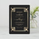 Art Deco Elegant Gold Frame Black Wedding Invitation