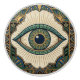 Embrace bohemian style with this exquisite ceramic pull, designed to bring a unique artistic touch to your furniture. The central element is a stylized eye motif, radiating outwards like a sunburst, complemented by intricate geometric borders in rich blue, deep green, and lustrous gold. This decorative pull is perfect for breathing new life into dressers, cabinets, or any piece of furniture that could use an artistic flourish. Its captivating design captures the imagination, offering a blend of spiritual symbolism and chic decor for your home.
