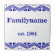 Art Deco family nameTile - Blue on white with a geometric border