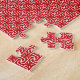 Puzzle in an Art Deco Japanese fan design patterned with a reproduction of a stylised Art Deco butterfly wallpaper - white on dark Chinese red, with an embossed gold base and a coordinating deco patterned background