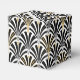 Digital reproduction of a classic, Art Deco wallpaper, fan pattern - black on white, embellished with gold