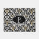 Digital reproduction of a classic, Art Deco fan pattern door mat with monogram - black on white, embellished with gold