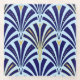 Digital reproduction of a classic, Art Deco wallpaper, fan pattern glass coaster - cobalt blue on light sky blue, embellished with gold