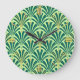 Digital reproduction of a classic, Art Deco wallpaper fan pattern - pine green on light mint green, embellished with gold