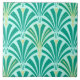 Digital reproduction of a classic, Art Deco wallpaper, fan pattern tile - turquoise / peacock blue on pale aqua, embellished with gold