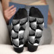 Do you like art deco inspired socks? This pair of socks features a white art deco fan pattern on a black background.