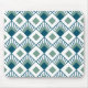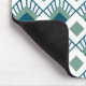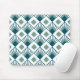 This mouse pad has an art deco design of teal diamonds with diagonal lines and seafoam green diamonds on a field of white.