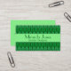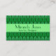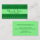 Business card in a vintage Art Deco wallpaper pattern based on a stylised feather - shades of mint and light emerald green, on a dark emerald green background