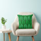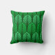 Throw pillow in a vintage Art Deco wallpaper pattern based on a stylised feather - shades of mint and light emerald green, on a dark emerald green background