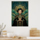 A stunning tribute to the Golden Age of Cinema. This masterpiece features a detailed vintage film projector silhouette standing atop a tiered Art Deco monument. Bathed in a radiant golden sunburst and framed by intricate teal geometric arches and celestial stars, this artwork embodies the glamour of a 1920s movie palace. Ideal for home theatres, media rooms, or as a high-end gift for cinephiles and directors.