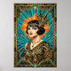 Art Deco Flapper Woman Portrait Gold Teal Poster