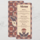 "Present your wedding feast with style using this elegant Art Deco wedding menu. Featuring a sophisticated stained glass floral pattern in earthy terracotta, mauve, and dusty rose tones, this card adds a retro-modern touch to your reception tables. The intricate background pattern colours are 100% adjustable to perfectly match your event's colour palette. Ideal for vintage-inspired or boho-chic weddings looking for a cohesive and artistic stationery suite."