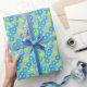 Art Deco flower pattern - blue and lime green Wrapping Paper