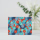 Art Deco flower pattern - blue, turquoise and red Postcard
