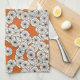 Art Deco flower pattern - cream on rust Tea Towel