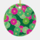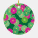 Art Deco flower pattern - shades of green, fuchsia Ceramic Tree Decoration