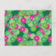 Art Deco flower pattern - shades of green, fuchsia Postcard