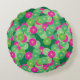 Art Deco flower pattern - shades of green, fuchsia Round Cushion