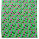 An Art Deco pattern shower curtain based on a traditional, stylised chrysanthemum pattern used in Japanese textiles, in shades of soft jade and lime greens with fuchsia pink, outlined in gold, on a dark, jade green background