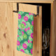 Art Deco flower pattern - shades of green, fuchsia Tea Towel