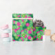 Art Deco flower pattern - shades of green, fuchsia Wrapping Paper