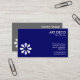 A clear stylish and attractive business card template with a simple but attention grabbing art deco style flower or star symbol. Main company details on the front, with name and personal contact on the back, on a grey background with a white version of the symbol.