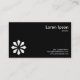 A clear stylish and attractive business card template with a simple but attention grabbing art deco style flower or star symbol. Main company details on the front, with name and personal contact on the back, on a grey background with a white version of the symbol.