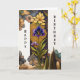 This floral card is designed in an Art Deco style. The use of shades of yellow and blue creates a harmonious and peaceful floral image, perfect for adding a touch of beauty and tranquillity. The gold outlines provide a beautiful contrast and adds a touch of luxury and elegance to the card.