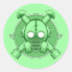 A vector designed art deco steampunk style gasmask that mimics the look of a skull and crossbones.