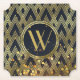 Art Deco Gatsby Glitter Geometric Pattern Monogram Paper Coaster