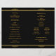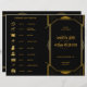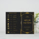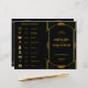 Wedding folded program and timeline with icons black and gold art deco design pattern
